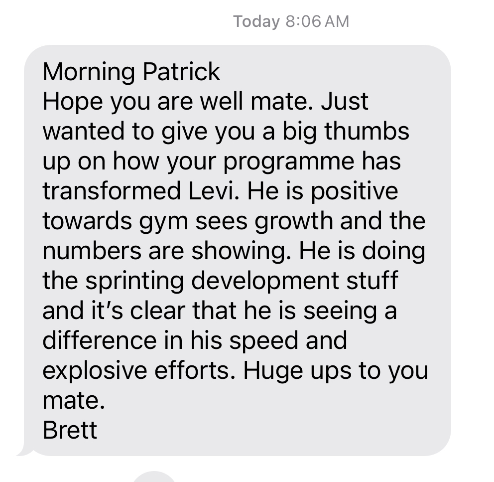 He started on our Body Weight Mastery program as that's all he needed to get started and would prepare him best before even needing to start weights.
