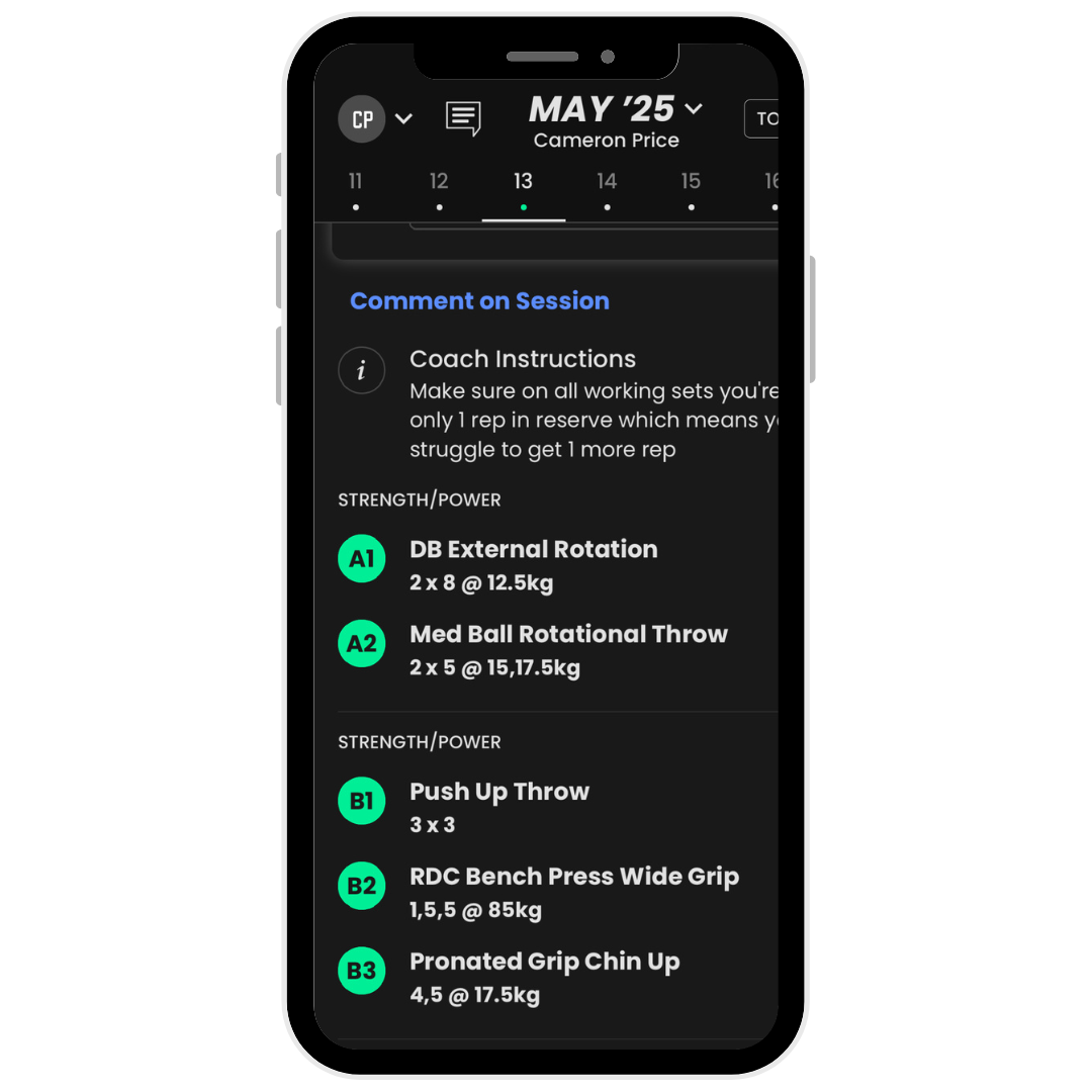 You get 4 gym workouts, 2 mobility days and 1 Sprint / Conditioning day. This optimised for you in the app if you can only do 3 days a week or you're in - season.